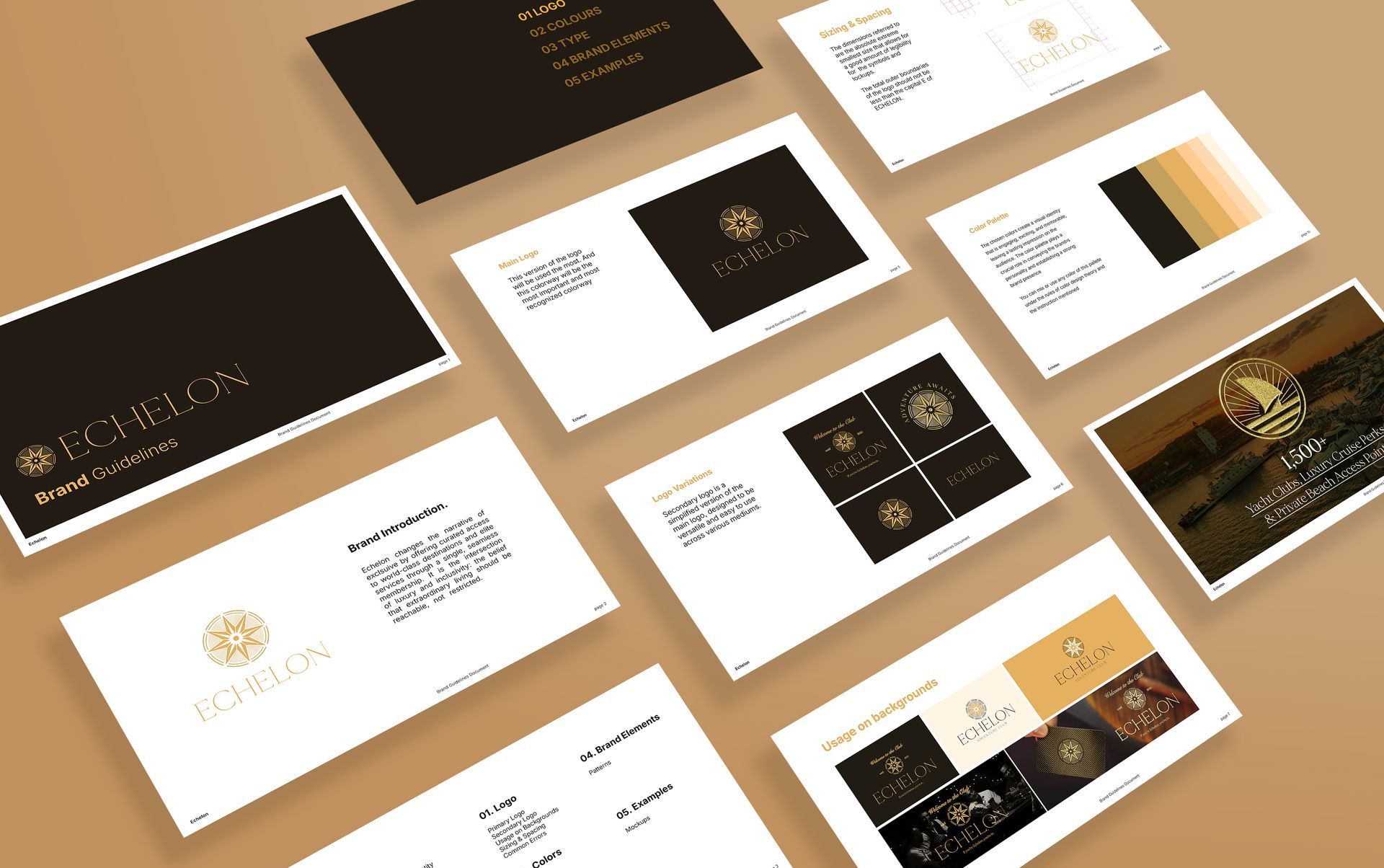 The Echelon brand prompted a careful balance between Art Deco luxury and practical recognition. The mark needed to function as a refined badge. Something instantly identifiable at a distance and easily replicated across merch, cards, and small applications; so, excessive detail was off the table. While I initially explored incorporating a suit or a tie built into the letter 'E', those directions quickly became too complex, leading to early forms that lacked the elegance the brand demanded, making the opening phase of the logo process a thoughtful and challenging refinement.
